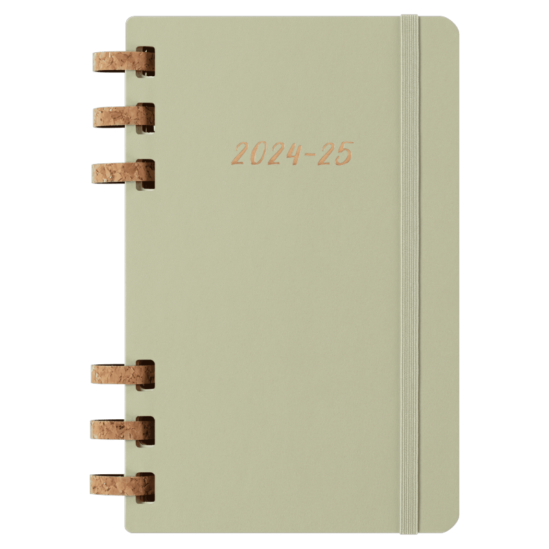 Sturdy yet flexible cork-mix spiral binding Dated from July 2024 to June 2025 Two-page monthly and weekly spreads Classroom companion