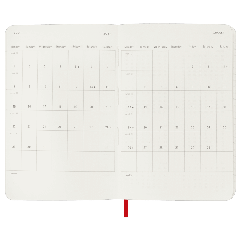 useful tools: calendar, travel planning, ideas and goals, ruled pages for notes