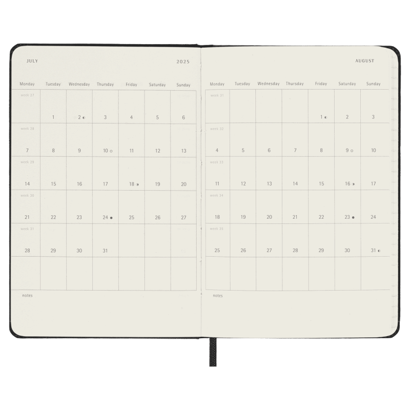 Useful tools: calendar, travel planning, ideas and goals, ruled pages for notes