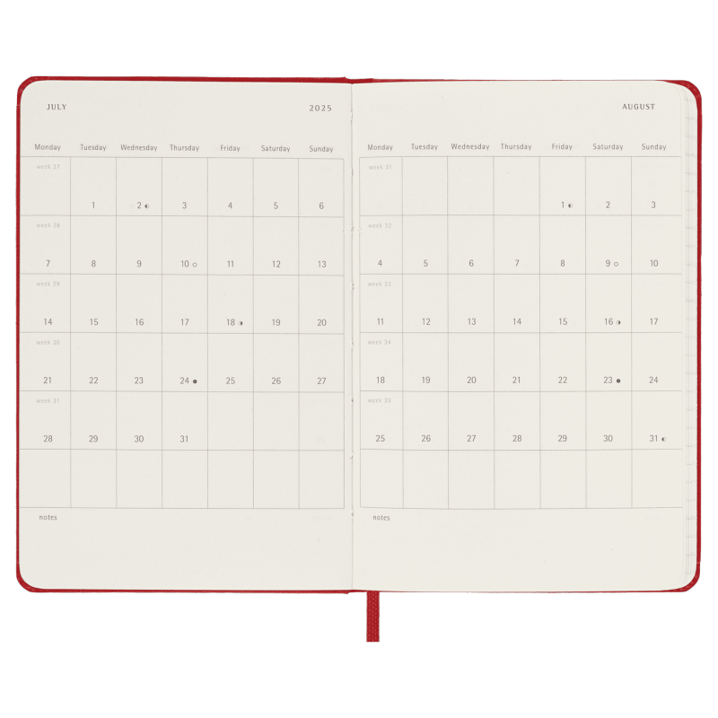 Useful tools: calendar, travel planning, ideas and goals, ruled pages for notes