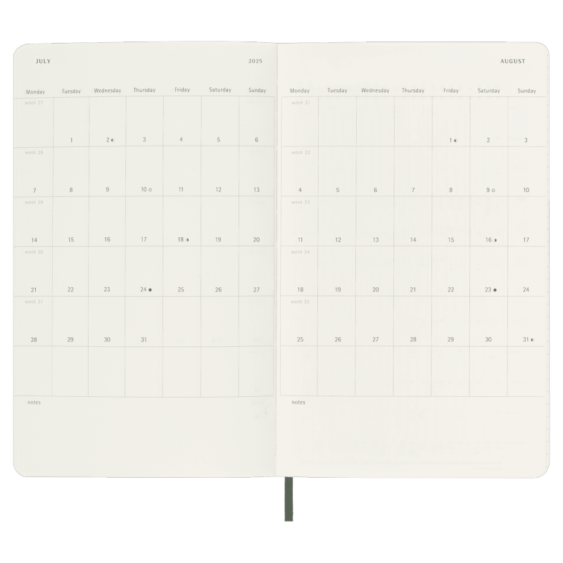 Useful tools: calendar, travel planning, ideas and goals, ruled pages for notes