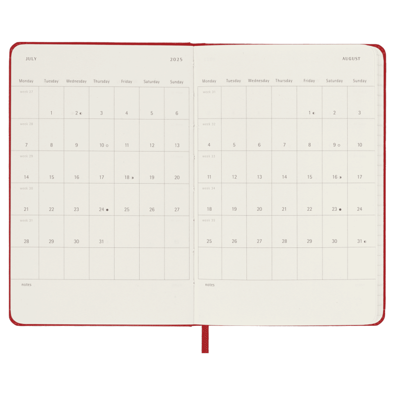 Useful tools: calendar, travel planning, ideas and goals, ruled pages for notes