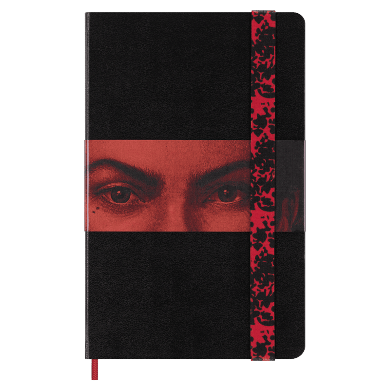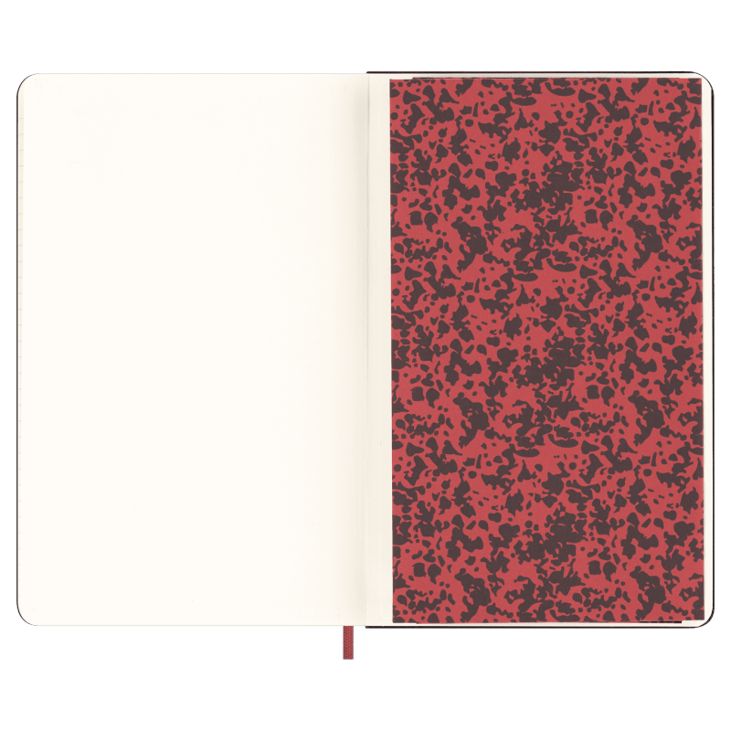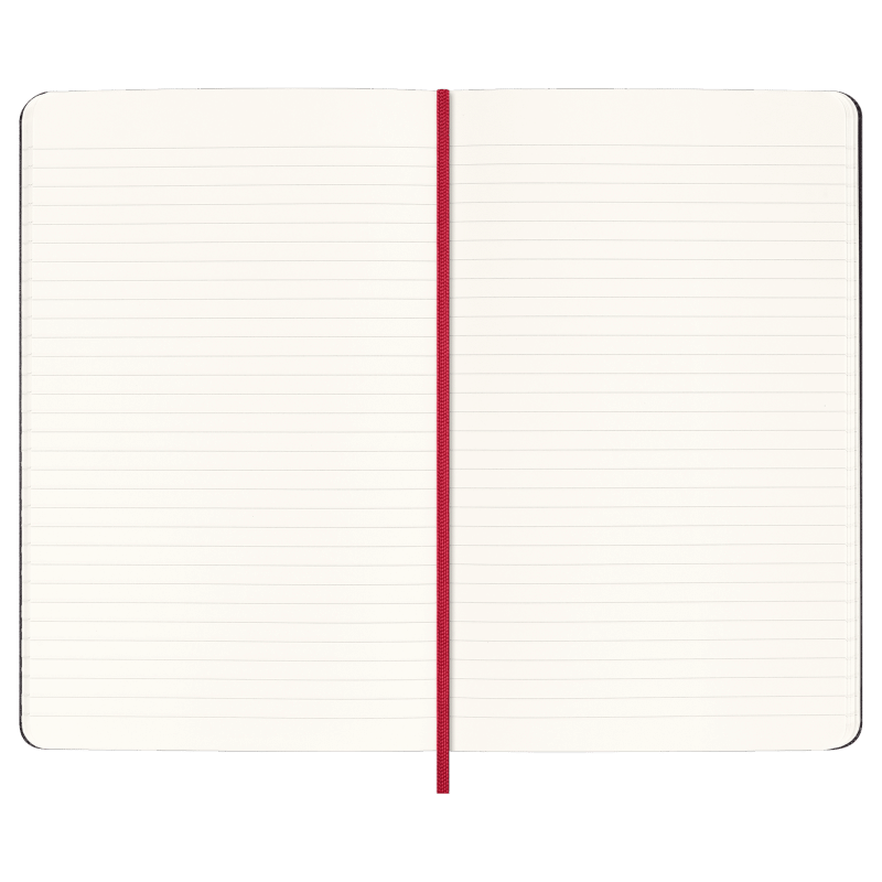 large, ruled, hard cover notebook