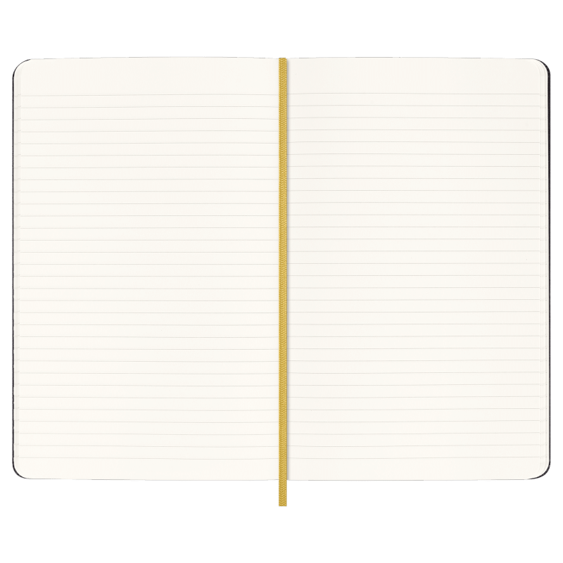 large, ruled, hard cover notebook