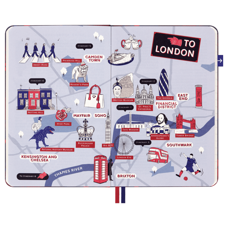 fold-out insert with key addresses, including hightlighted Moleskine picks