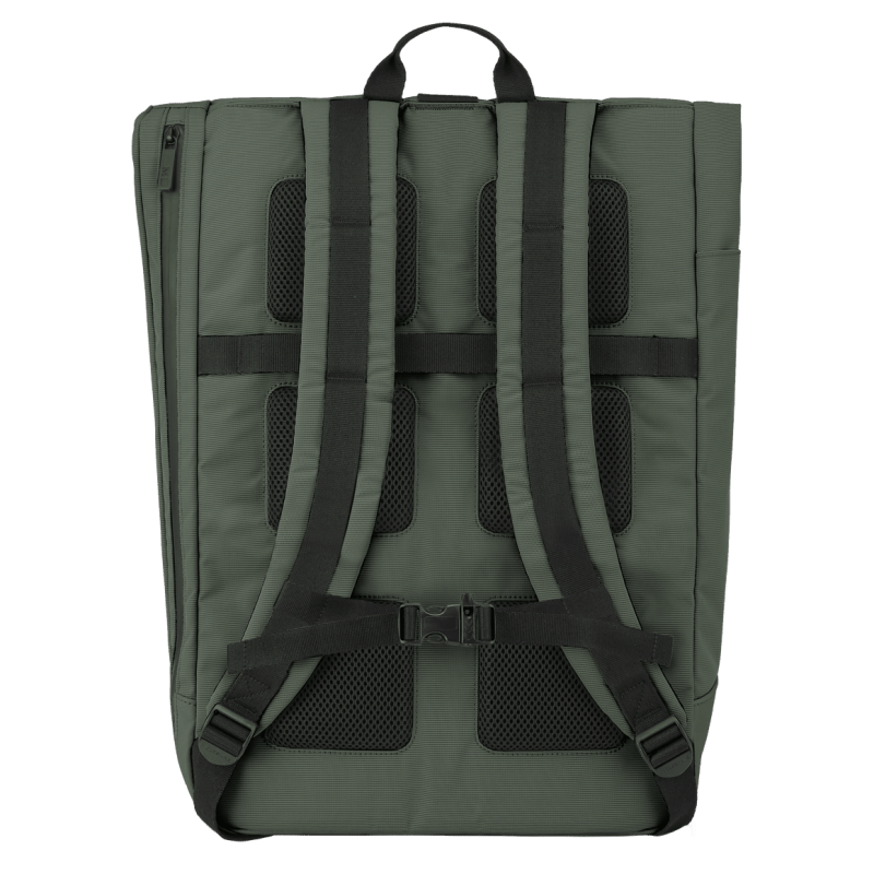 1 compartment with rolltop closure, adjustable belt and flat buckle