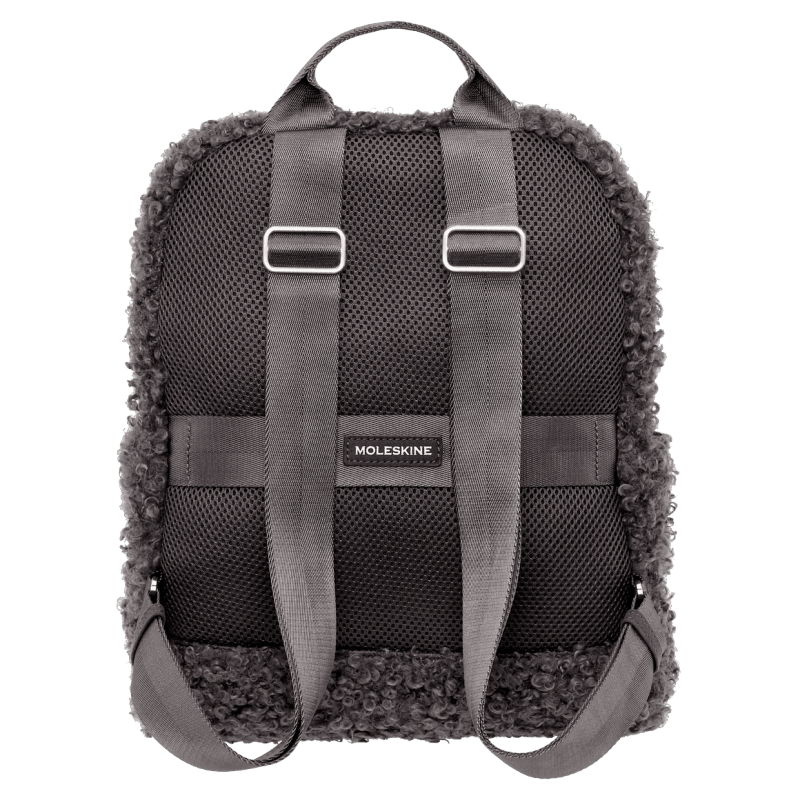 separate lined pouch made from the same textile as the backpack with a second mesh pouch inside