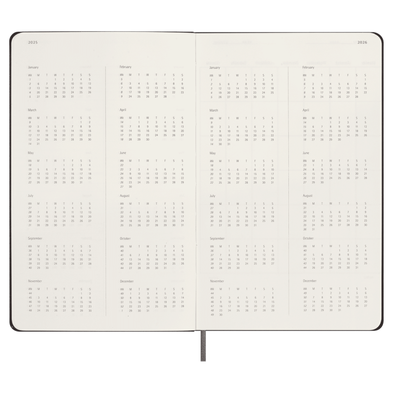 Two-page monthly and weekly spreads