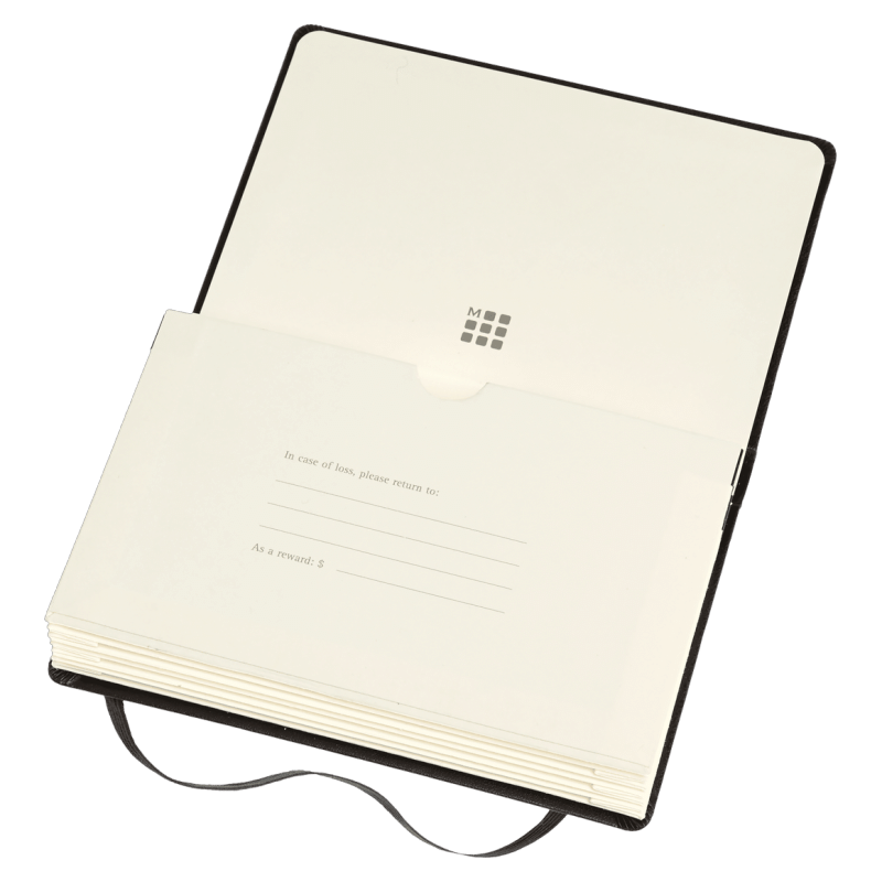 soft cover rounded corners front endpaper with ‘In case of loss’ notice ivory-colored, 70 g/m², acid-free paper: plain or ruled