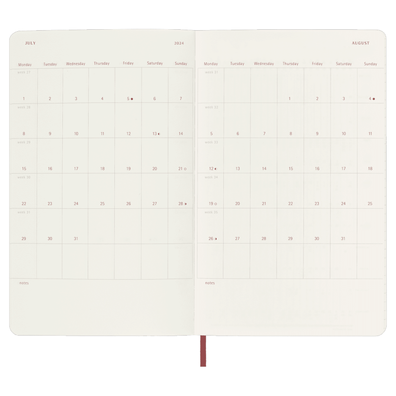 useful tools: calendar, travel planning, ideas and goals, ruled pages for notes