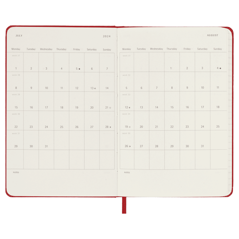 useful tools: calendar, travel planning, ideas and goals, ruled pages for notes