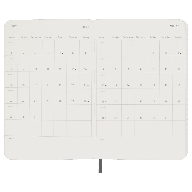useful tools: calendar, travel planning, ideas and goals, ruled pages for notes