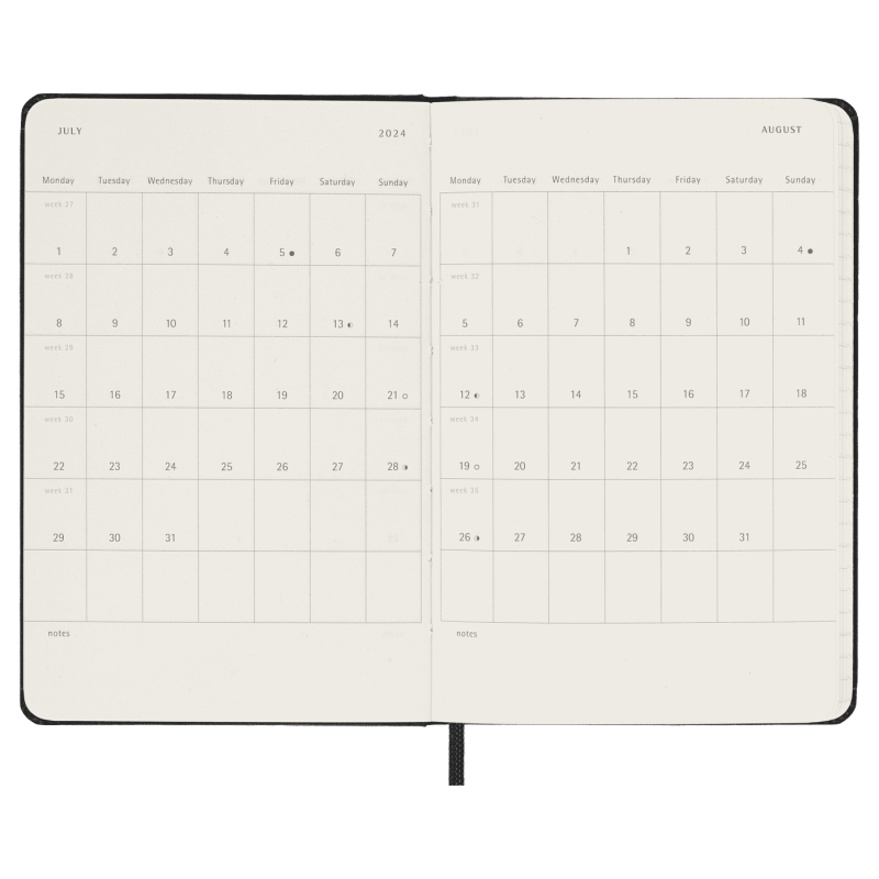 useful tools: calendar, travel planning, ideas and goals, ruled pages for notes
