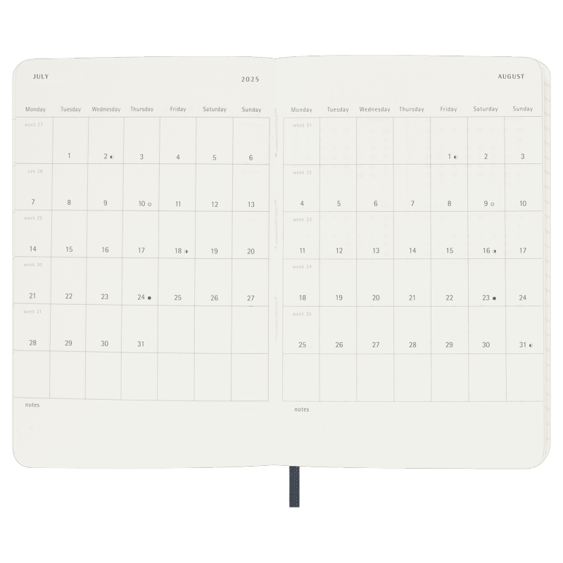 Useful tools: calendar, travel planning, ideas and goals, ruled pages for notes