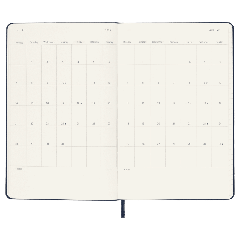 Useful tools: calendar, travel planning, ideas and goals, ruled pages for notes