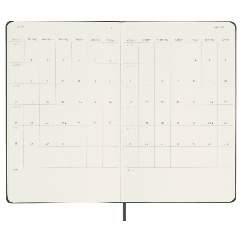 Useful tools: calendar, travel planning, ideas and goals, ruled pages for notes