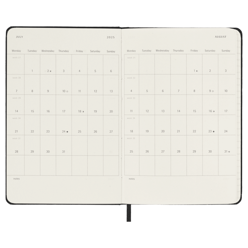 Useful tools: calendar, travel planning, ideas and goals, ruled pages for notes