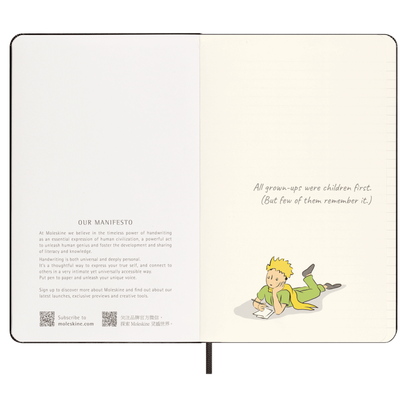 hard cover notebook with original illustrations and words from Le Petit Prince