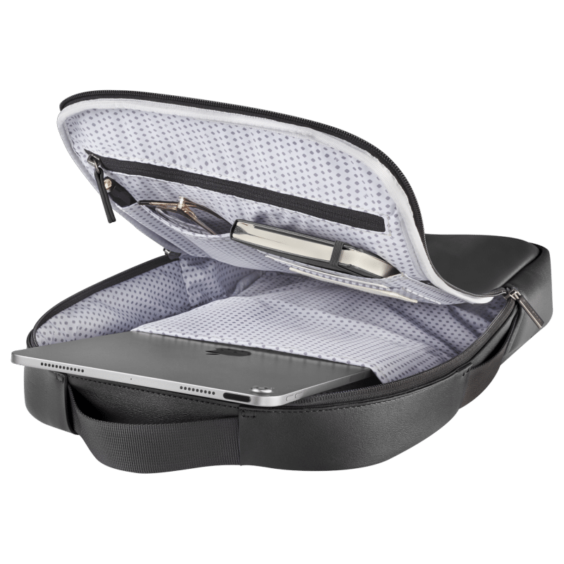 1 secure zip pocket and 1 organizer with 2 pen holders and business card holder