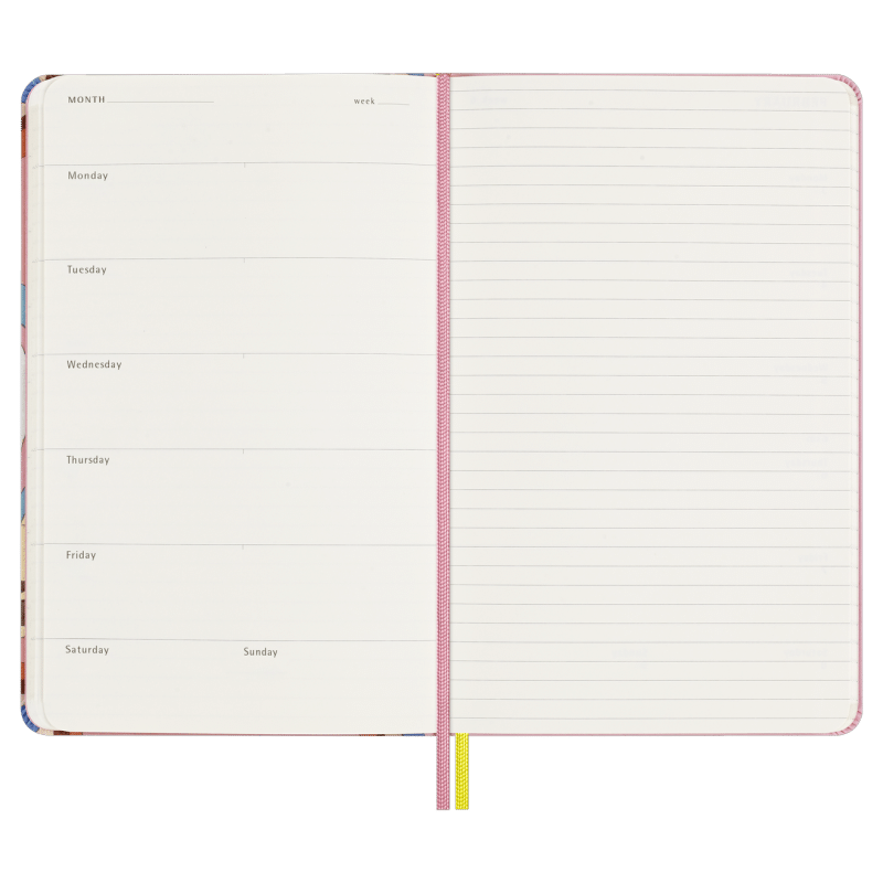 Undated weekly notebook layout with days of the week opposite a page for notes