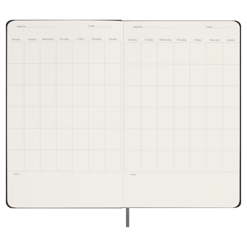 Two-page monthly and weekly spreads