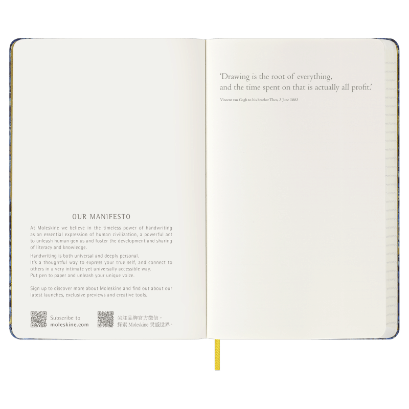 endpapers and paperband featuring Van Gogh’s art and information about his life and work