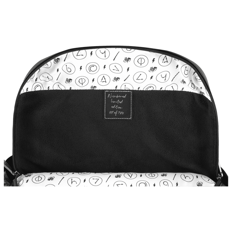 main body and straps with Harry Potter-inspired debossed graphics and glow-in-the dark lightning bolts