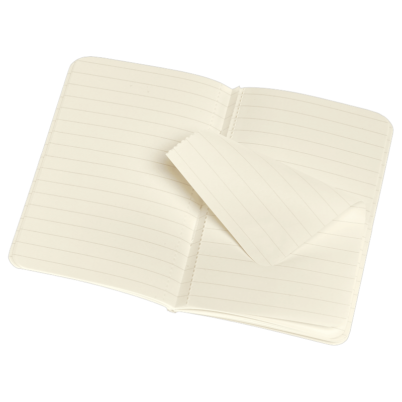 soft cover rounded corners front endpaper with ‘In case of loss’ notice ivory-colored, 70 g/m², acid-free paper: plain or ruled