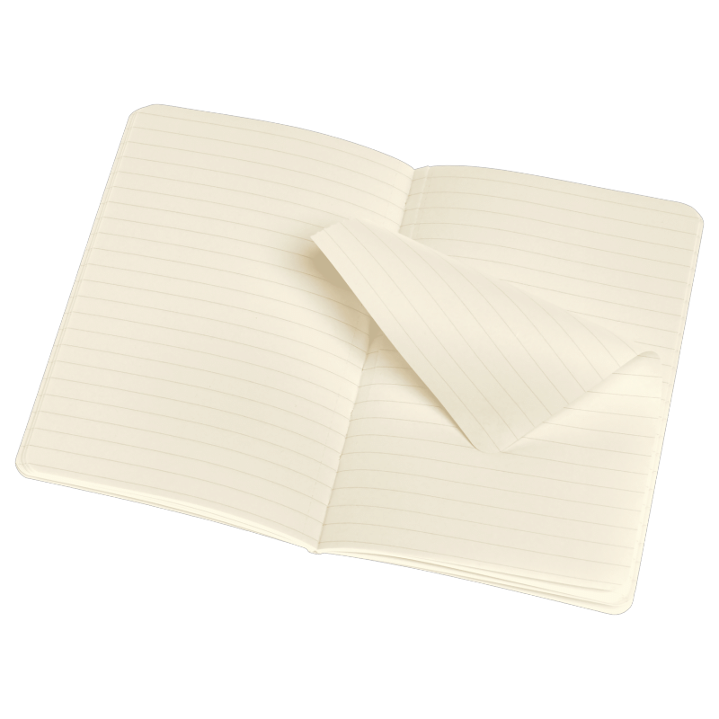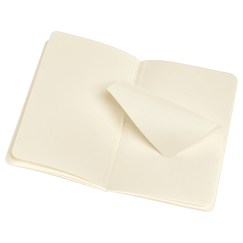 soft cover rounded corners front endpaper with ‘In case of loss’ notice ivory-colored, 70 g/m², acid-free paper: plain or ruled